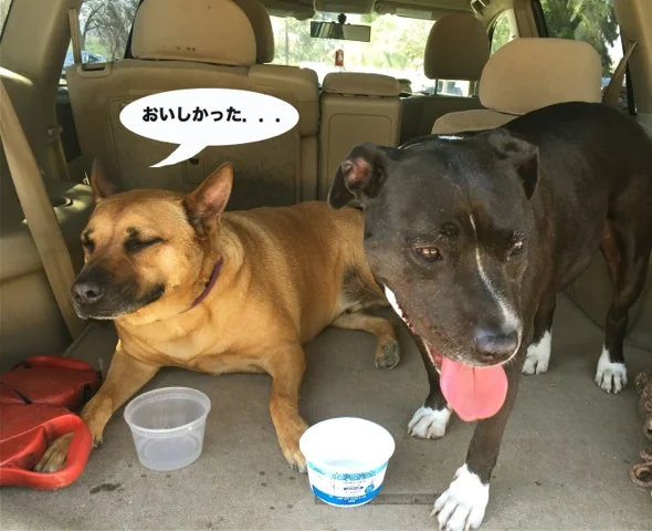 今日は暑かったので、2匹は水をがぶ飲みしました。