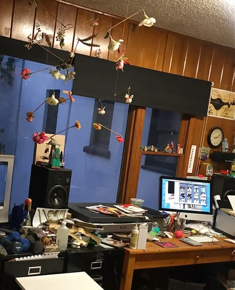 これが、ウォーキングデスクから見た光景です。昨日も書きましたが、凄い散らかりようですねえ。
