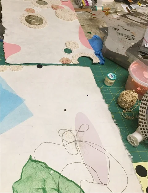 紙の作品の続きをしました。今のところイマイチです。