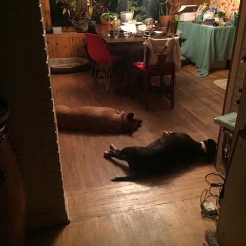 毎日暑い日が続いているので、散歩以外は家の中にいる2匹。ちょっと、太ってきました。