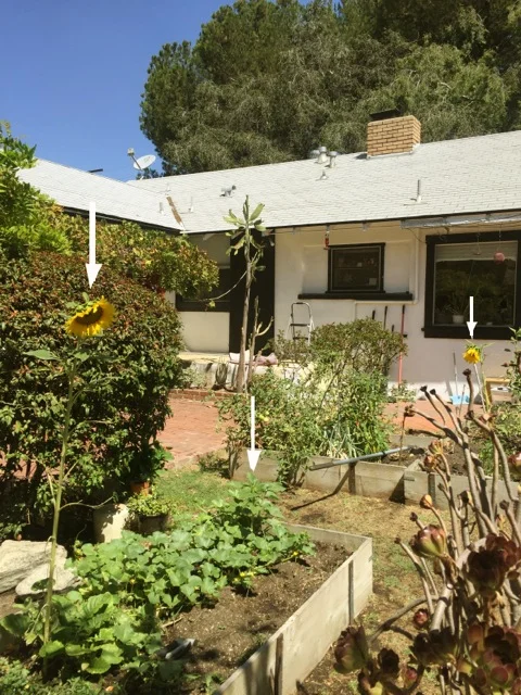 小鳥の餌、黒ひまわりの種が落ちて、生えてきたのです。