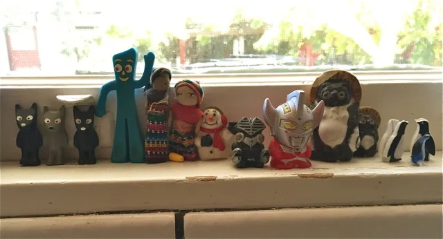 私が集めているキッチン窓のガラクタをエレナ風に並びかえたりします。