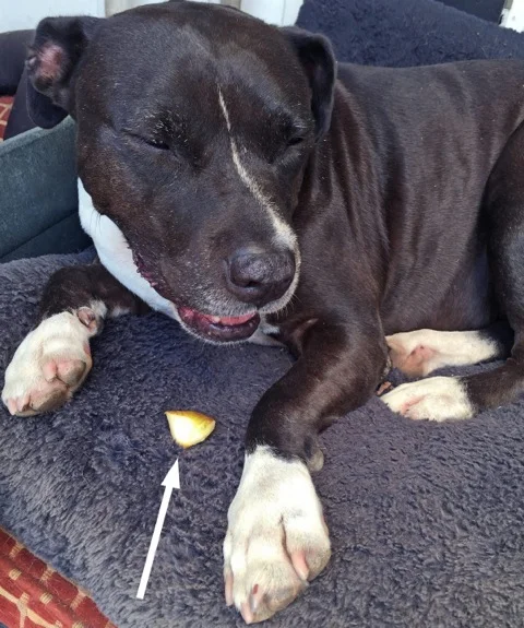 美味しいフジりんごを買ったので、イングリットとミンガスにもおすそ分けしたら、