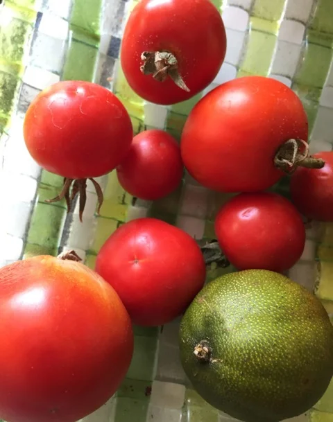 これは、裏庭になったトマトです。赤くなったのに、誰も食べません。