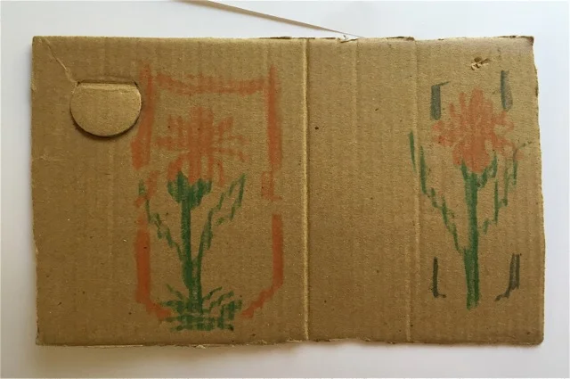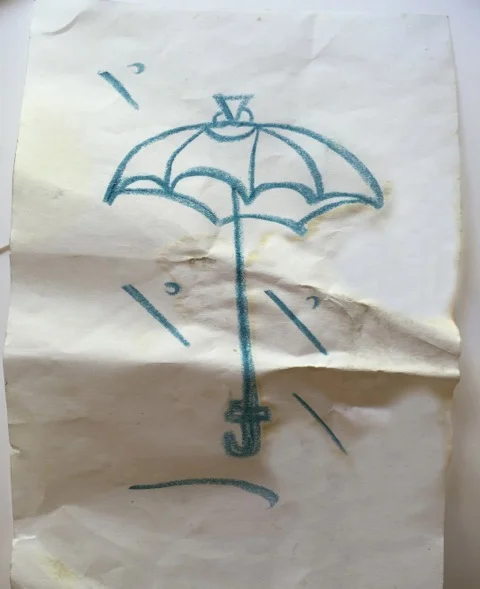 傘の絵はキレイな用紙に描いてあったのに、こんなにしてしまった。