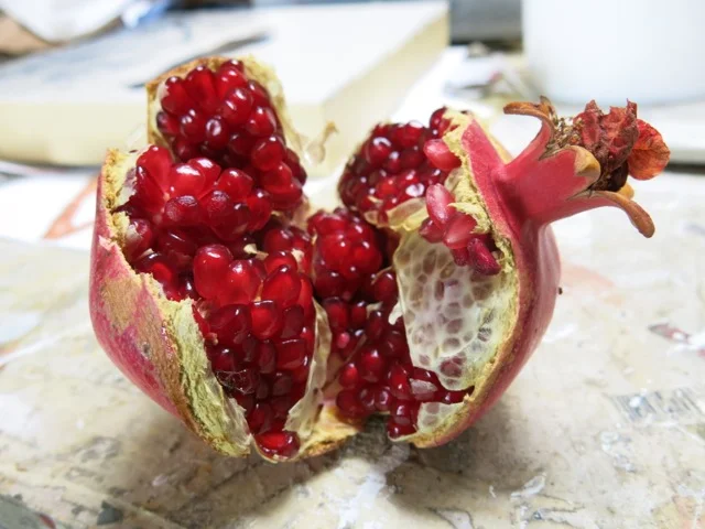 ざくろのイメージは好きでよく作品に使います。写真も撮りました。