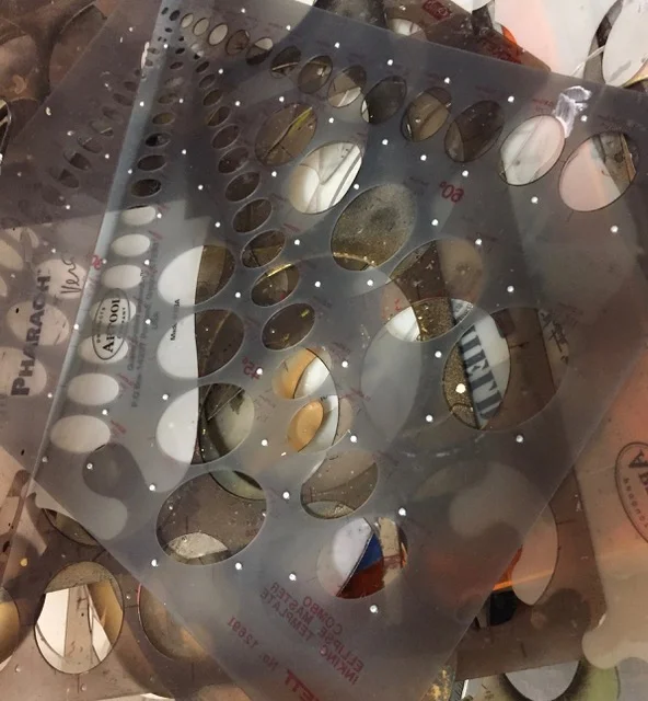 あちこちに置いてある、テンプレートはタッパウェアーに。