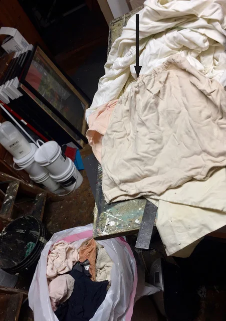 ため込んでいる、古いTシャツやシーツまで出してきて、