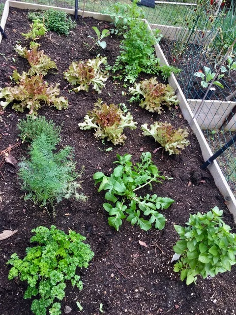朝食の後、プランターのハーブと野菜の水やり。
