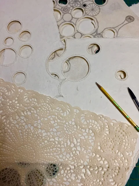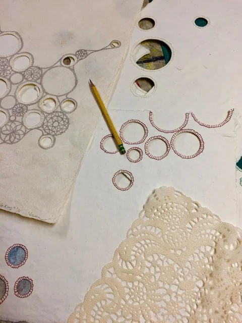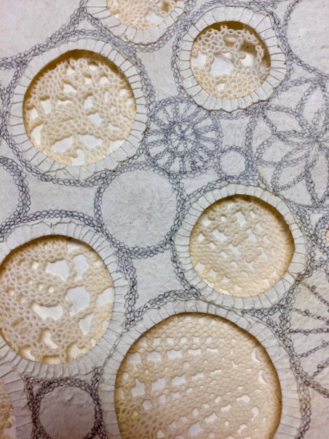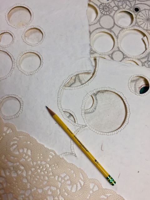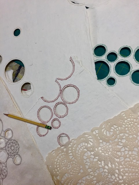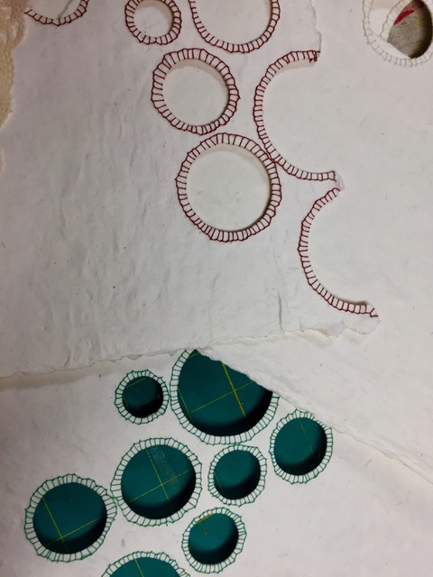 2つの円を縫ったあと「糸、太すぎるかな?」