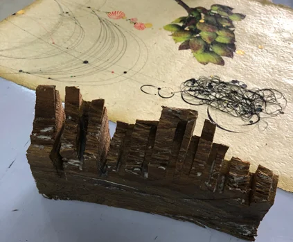決まった時間に手持ちや用意されただけの画材で作品を仕上げる。紙のコラージュ作品はそれなりにうまくいきますが、作っていてなんだかつまらなかったです。やっぱり私にとって制作の醍醐味はよく分からないところに入って行く事です。