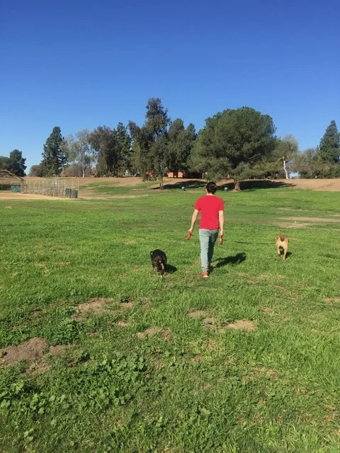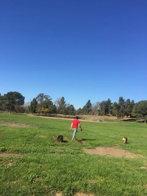 息子が帰ってきて、たまに犬たちを散歩に連れて行くと、